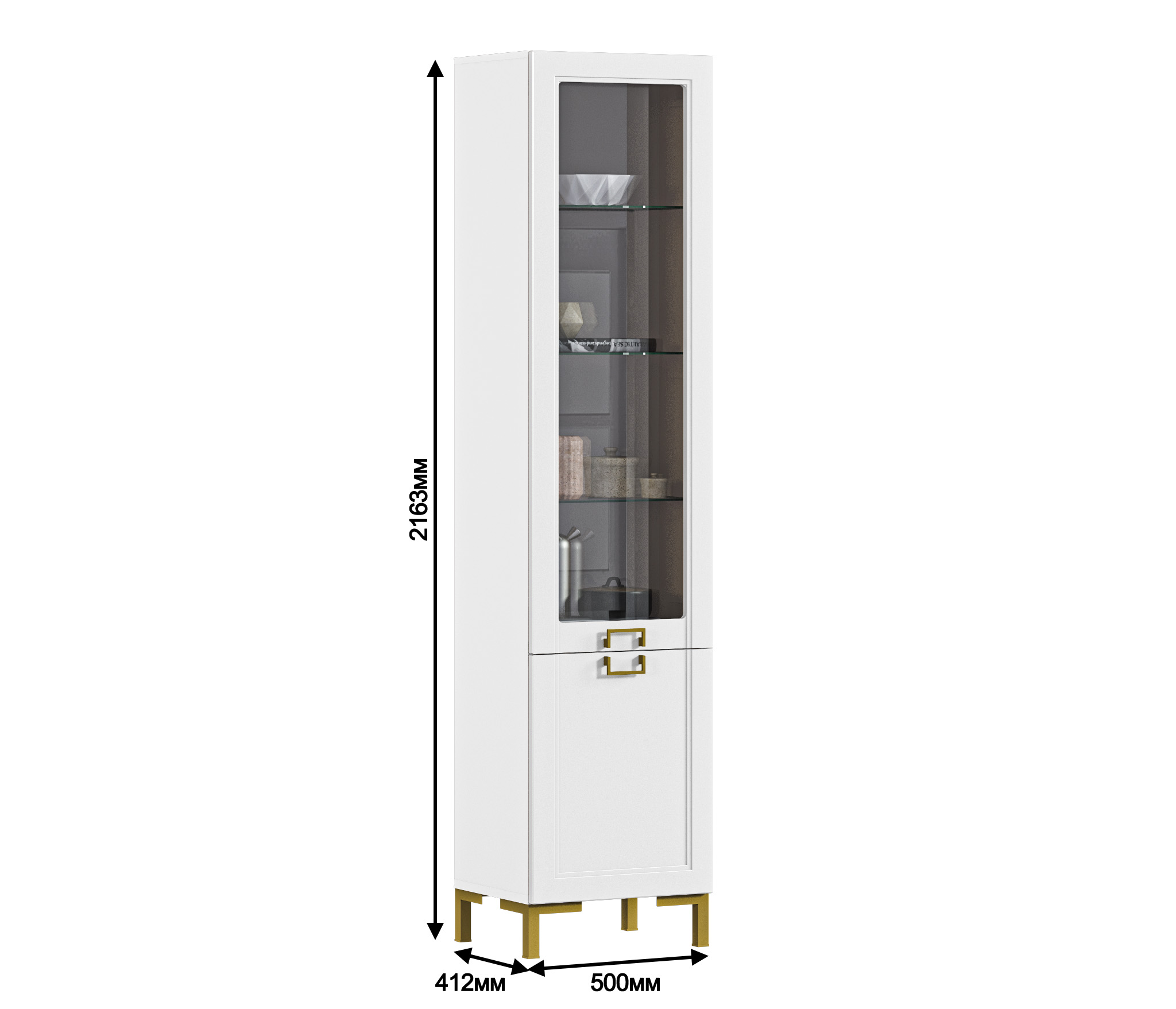 Шкаф-витрина Ассоль СБ-3429 Белый/МДФ Белый Код 00000329327