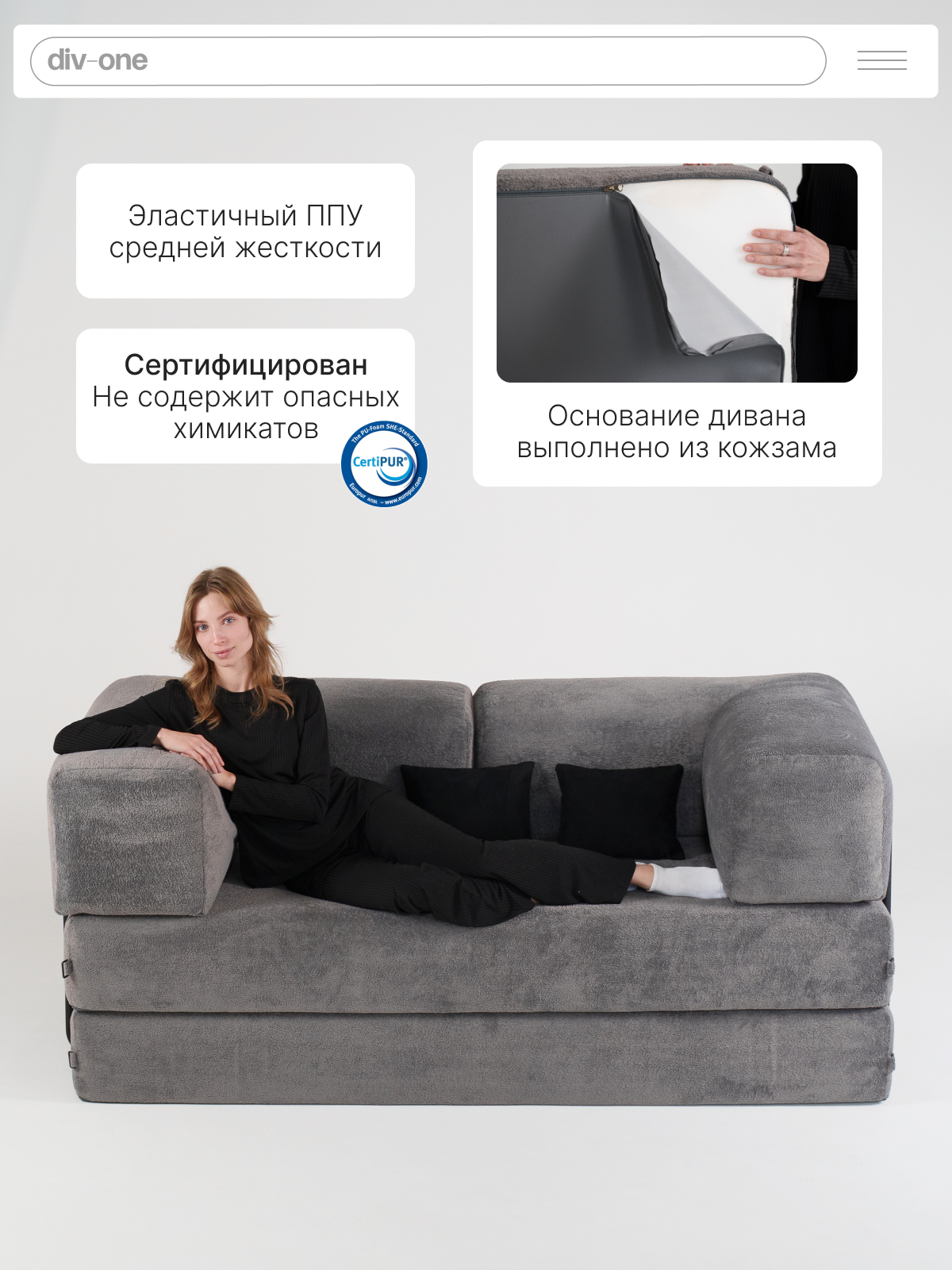 «Клауд» — это большой диван трансформер для каждого. Он станет идеальным двухспальным диваном со спинкой для молодежи, надежным семейным центром для взрослых и безопасной игровой зоной для детей. Представьте его на вашей даче, где он подарит комфортный отдых после насыщенного дня, или на утепленном балконе, превращенном в личный оазис для чтения и релаксации.