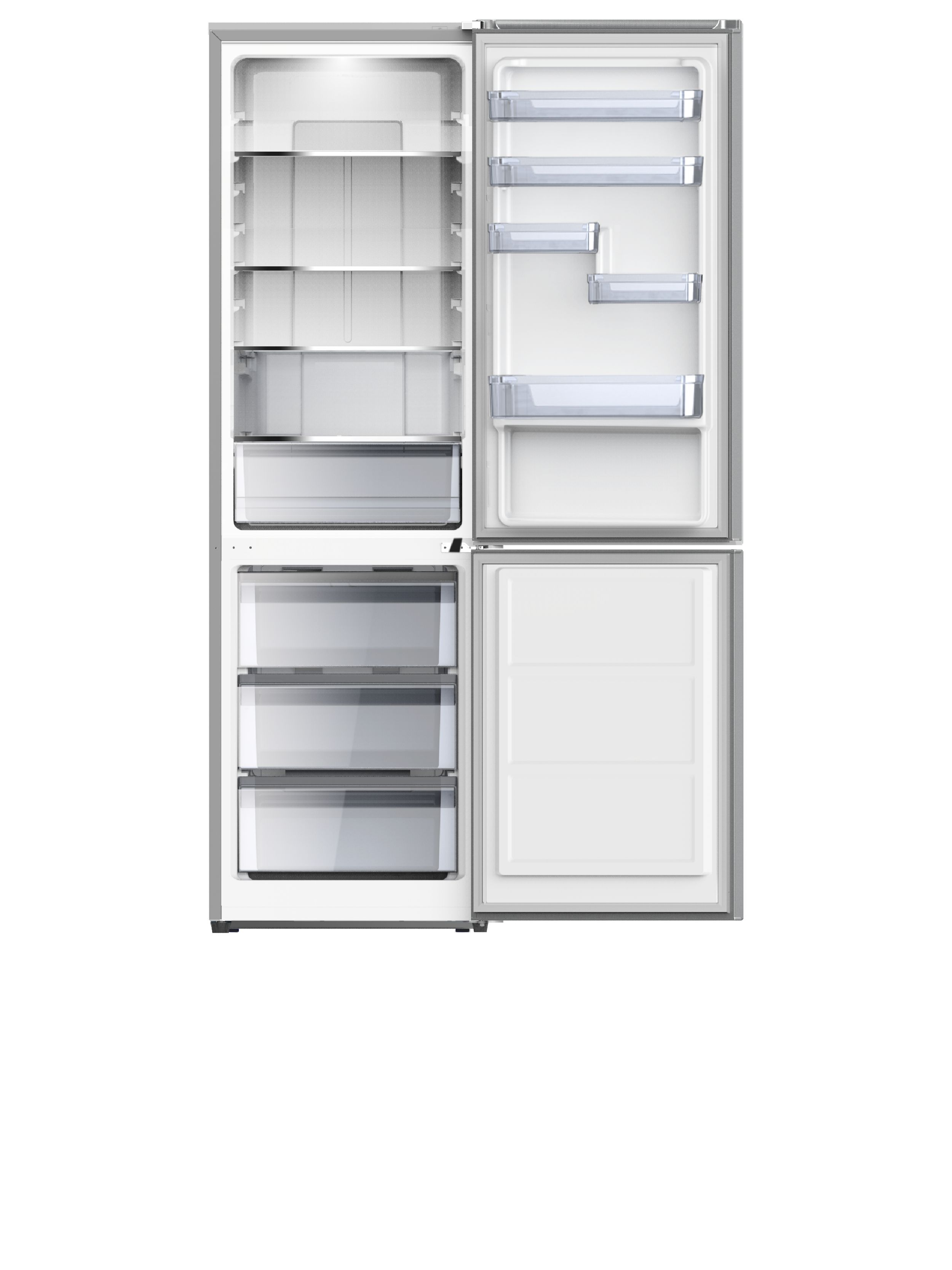 Холодильник-морозильник с функцикцией No Frost ,цвет: нержавеющая сталь, класс энергопотребления: A+, электронное управление с внешним дисплеем,зона свежести,3 полки из закаленного стекла, 5 прозрачных дверных полок, подставка для яиц, контейнер для льда,LED освещение х/о.Количество компрессоров: 1.Мощность замораживания (кг/24 ч): 9.Длительность сохранения холода при отключении электроэнергии (ч): 13. Общий полезный объем 344 л. Объем нетто холодильного отделения, л: 235,объем нетто морозильного отделения, л: 109, уровень шума 41 дБ,1950х645х594.