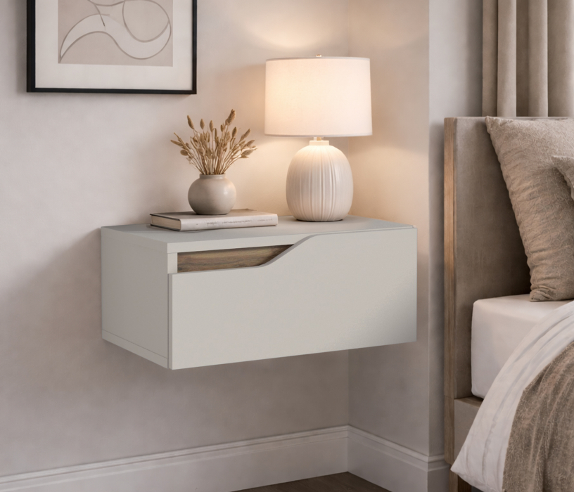 Особенностью данной модели являются плавные вырезы в фасадах, которые не только удобны для открывания, но и добавляют оригинальности. Внутри этих вырезов расположены вставки цвета Дуб вотан, что создает контраст и подчеркивает эстетику мебели.