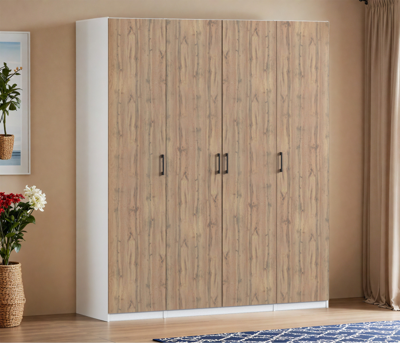 Шкаф четырехдверный Макс 2000 мм, вариант №1 (ЛДСП) (Дуб вотан/Белый)