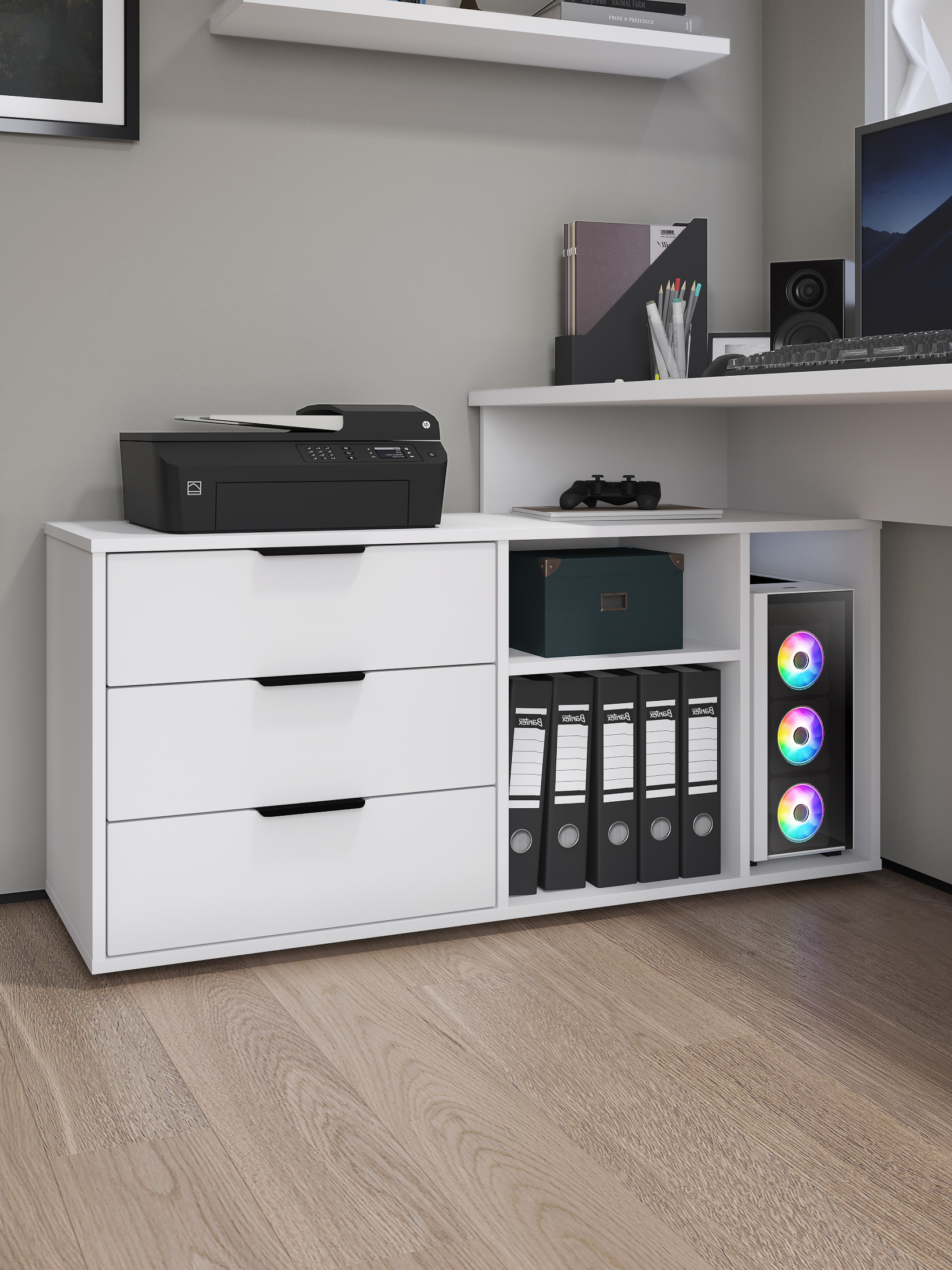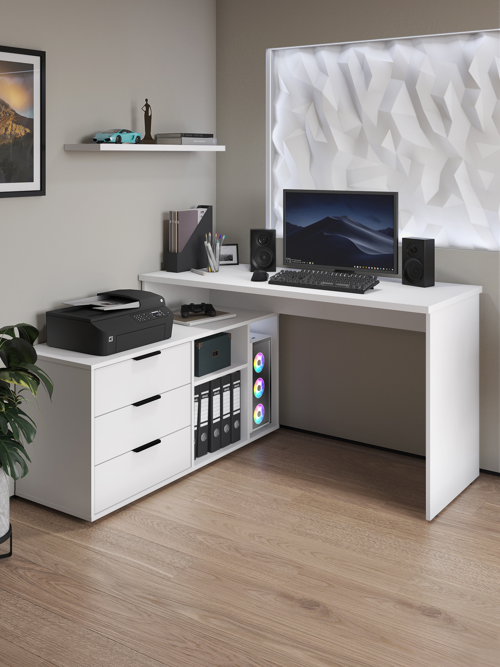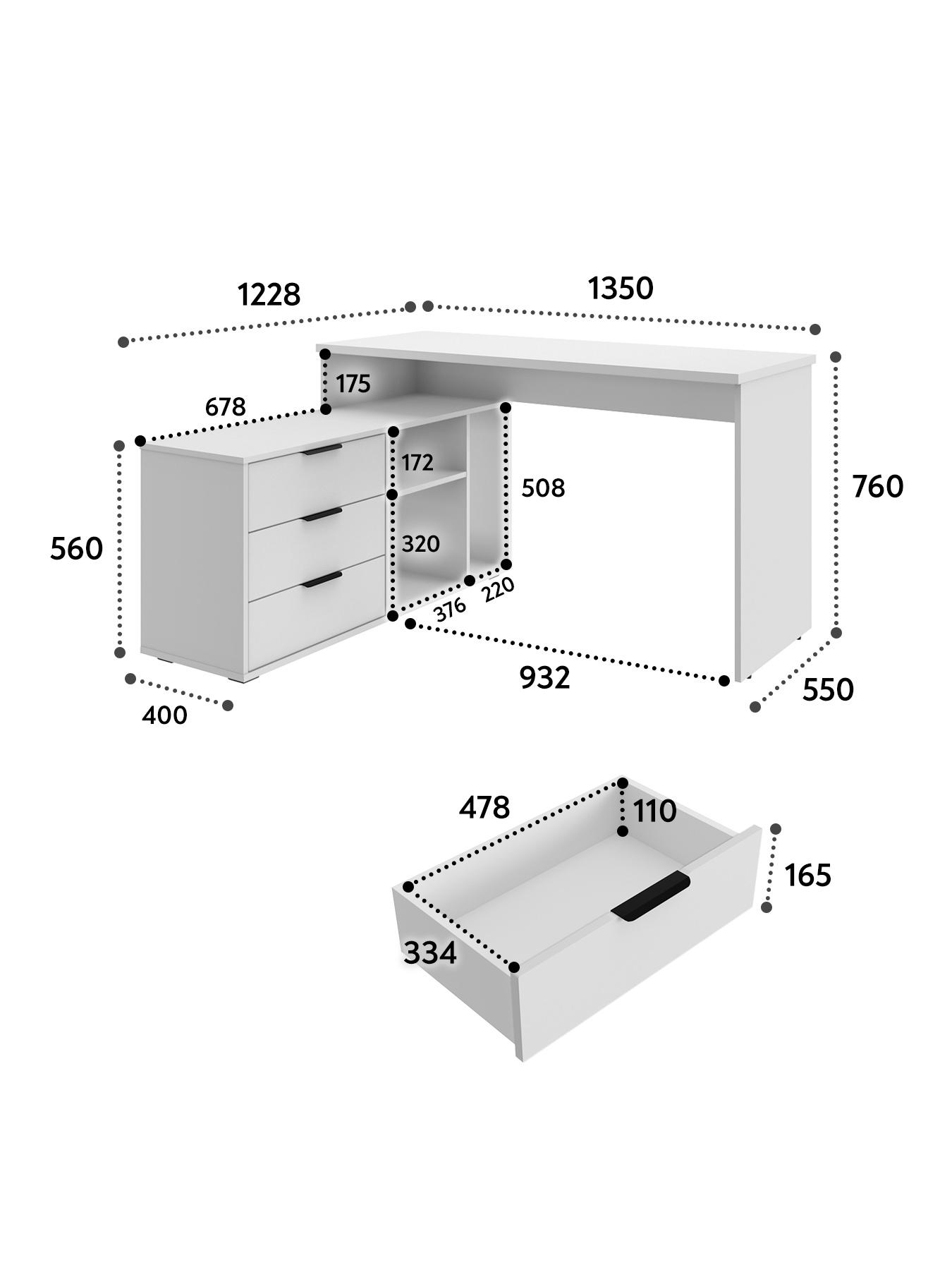 Размеры модуля (ш/в/г) в мм: 1269/1135/1004х880х553 Материал корпуса/фасада: ЛДСП 16 мм, МДФ 16 мм Основные характеристики стола ОП-21: дно ящиков — ДВП 3 мм. прочная стальная опора и тумба с четырьмя выдвижными ящиками для удобного хранения. столешница изготовлена из ЛДСП 16 мм. Преимущества стола ОП-21: Универсальность: подходит для использования в качестве письменного, компьютерного или маникюрного стола. Рекомендуется высокий стул. Фурнитура: телескопические направляющие полного выдвижения без доводчиков, металлические ручки и опора. Доставка и сборка: мебель поставляется в разобранном виде, в надежной упаковке, с подробной инструкцией по сборке. Сборка осуществляется самостоятельно или с привлечением специалистов.