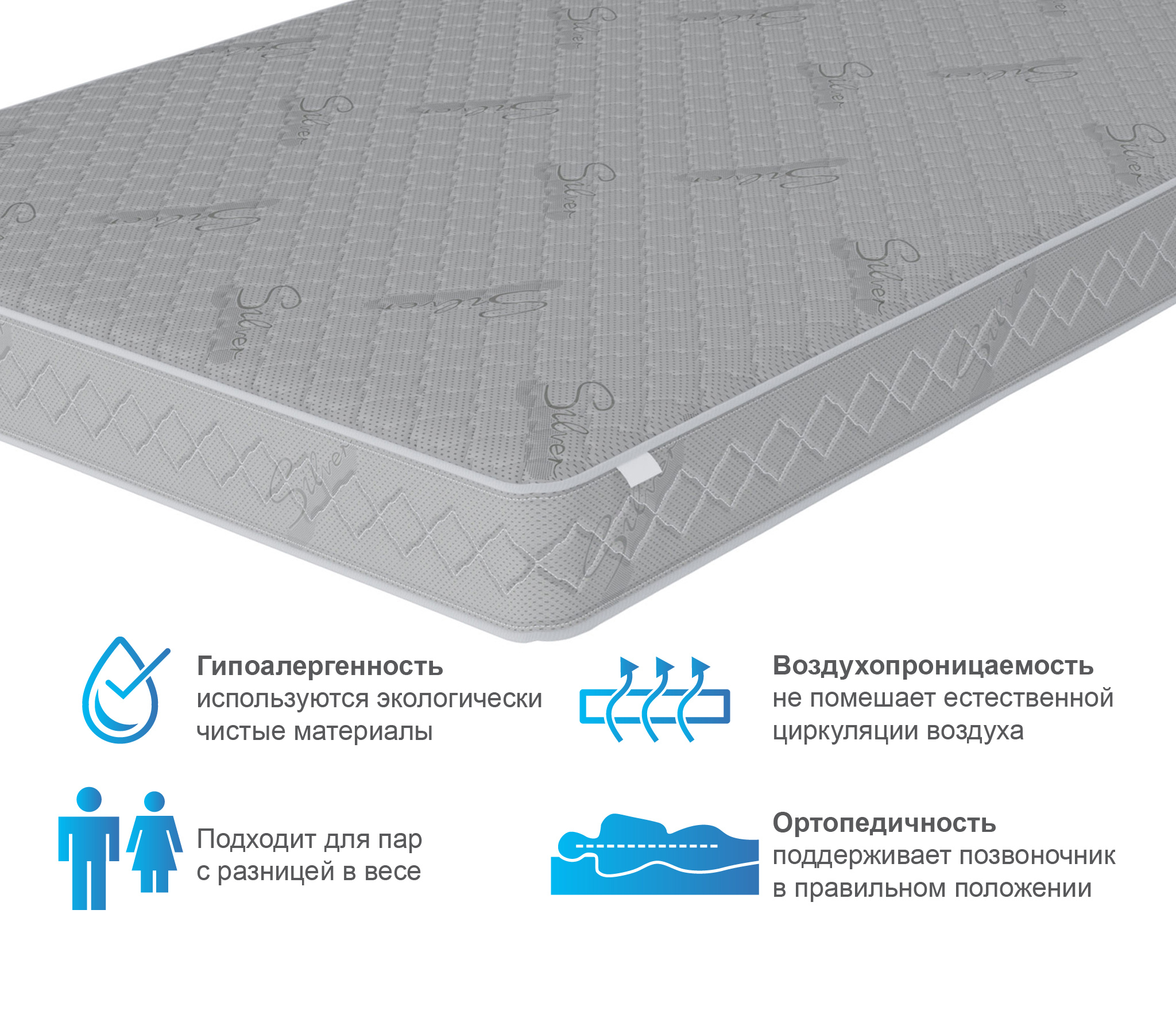 Гипоаллергенный спальный матрас прослужит долгие годы. Для продления срока эксплуатации рекомендуем использовать изделие вместе с защитным чехлом.