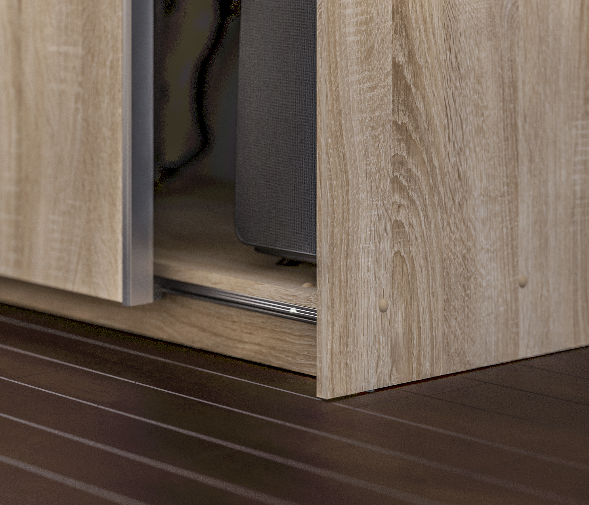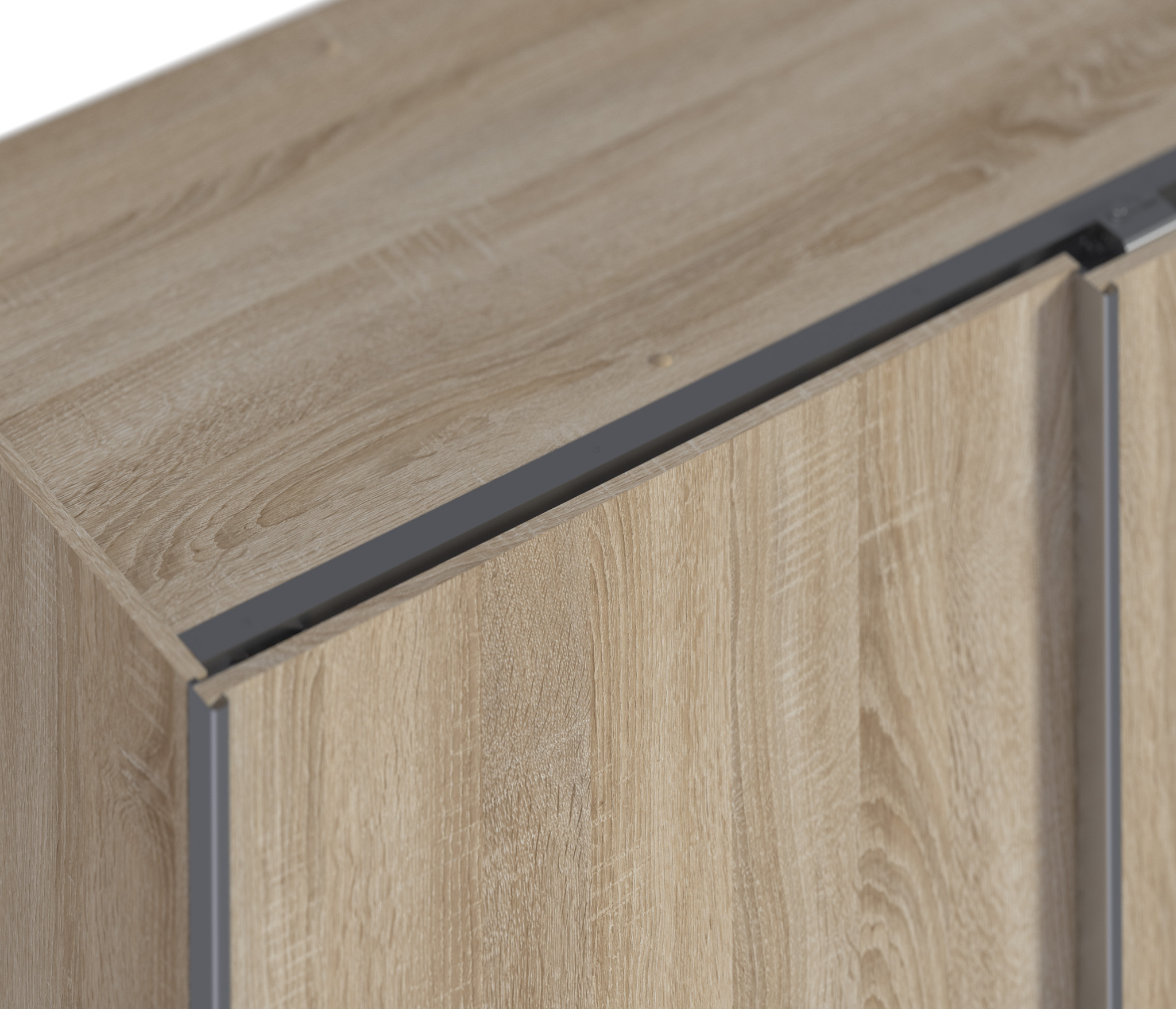 Корпус модели произведен из прочного ламинированного ДСП. Отделка корпуса в цвете «Дуб Сонома». Отделка фасадных поверхностей – сочетание цветов белого и «Дуб Сонома».