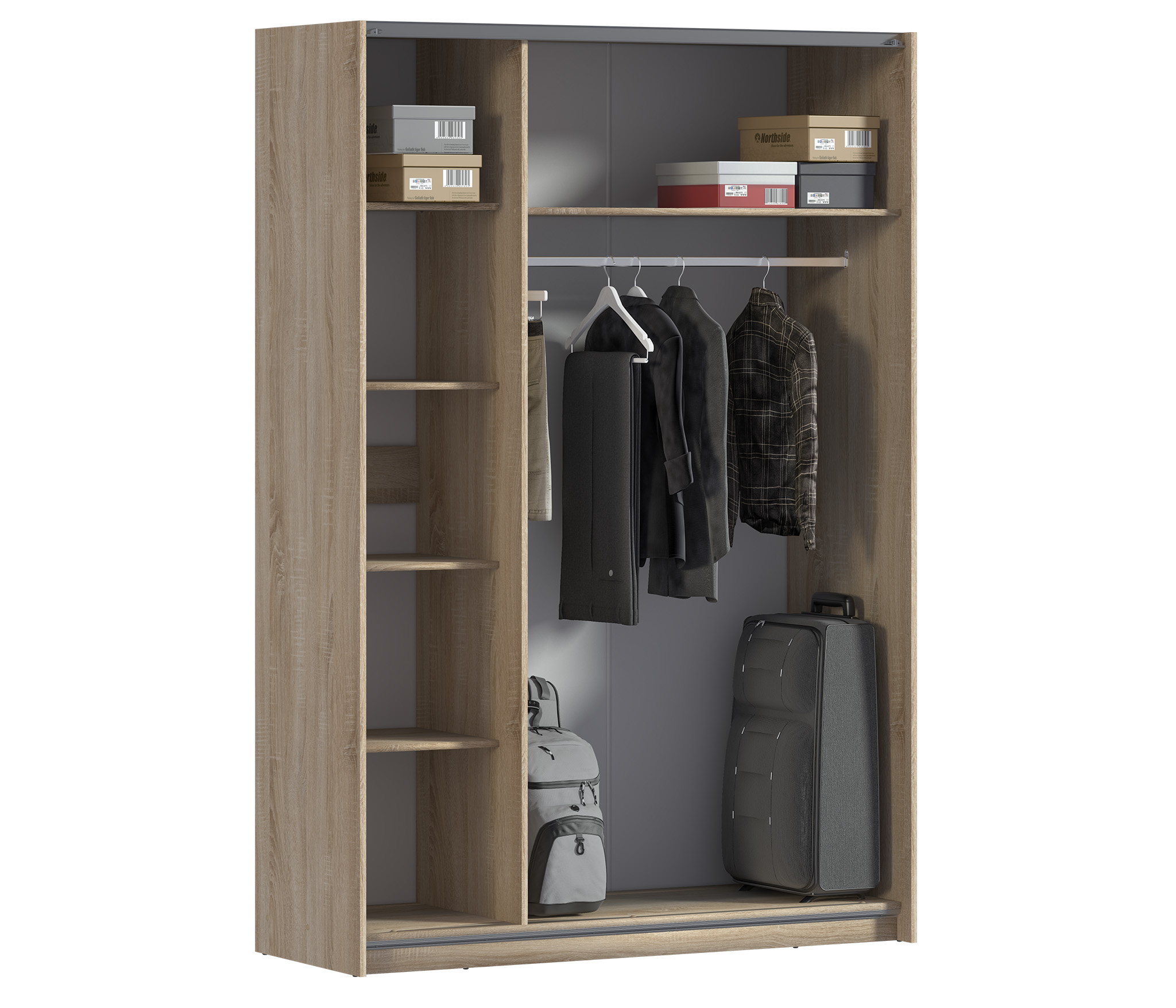 Шкаф-купе Мамбо СБ-2907 – современное решение всех задач, которые связаны с хранением вещей. Благодаря минималистичному дизайну он впишется в интерьер спальни, прихожей, кабинета или офиса. Шкаф органичен как соло, так и может быть дополнен предметами модульной коллекции Мамбо. ¶Габаритные размеры – ширина 150 см, высота 222,4 см и глубина 64 см. В шкафу два отделения – большое плательное со штангой для плечиков и антресолью и отделение с пятью полками.