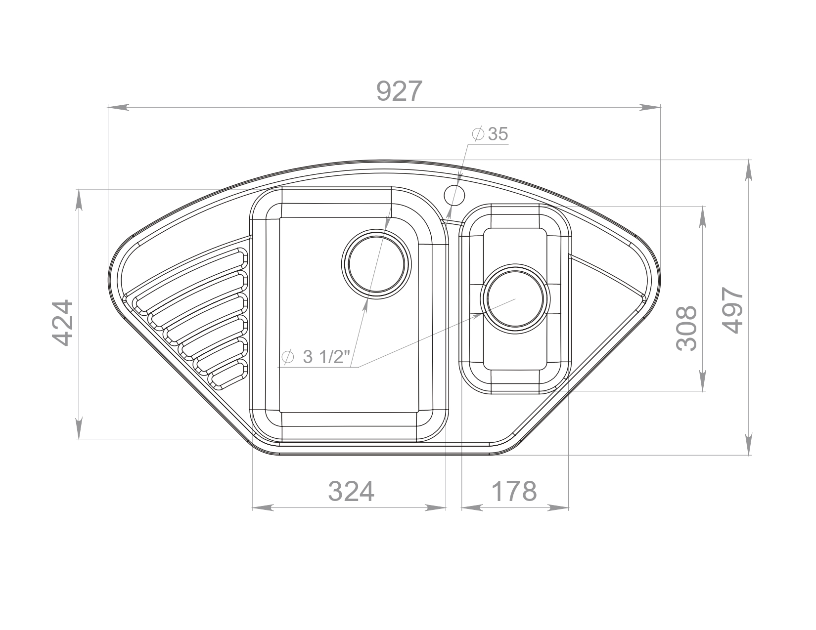 Общий размер мойки: 930х500