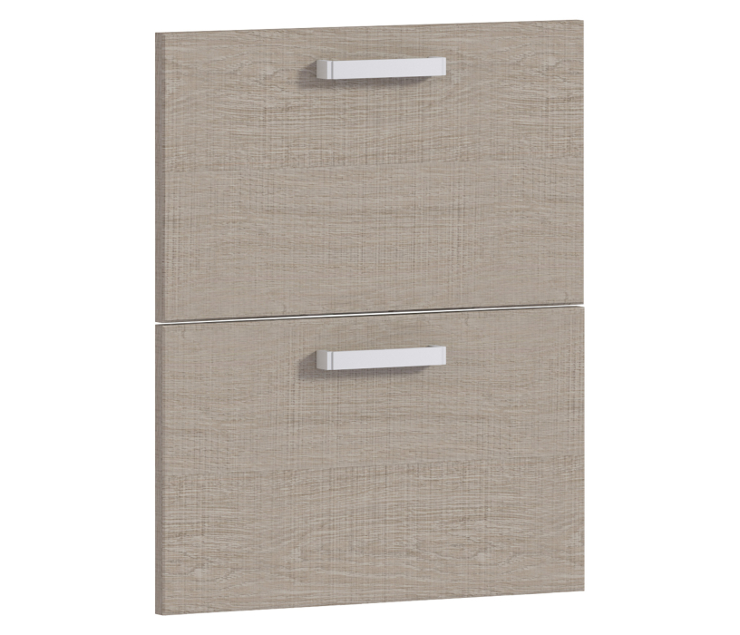 Две панели с ручками для ящиков шкафа. Они предназначены для классического кухонного шкафа с двумя ящиками. Можно выбрать панели бежевого цвета или оттенка «дуб Ривер» и «вишня Барселона» и «бежевый».