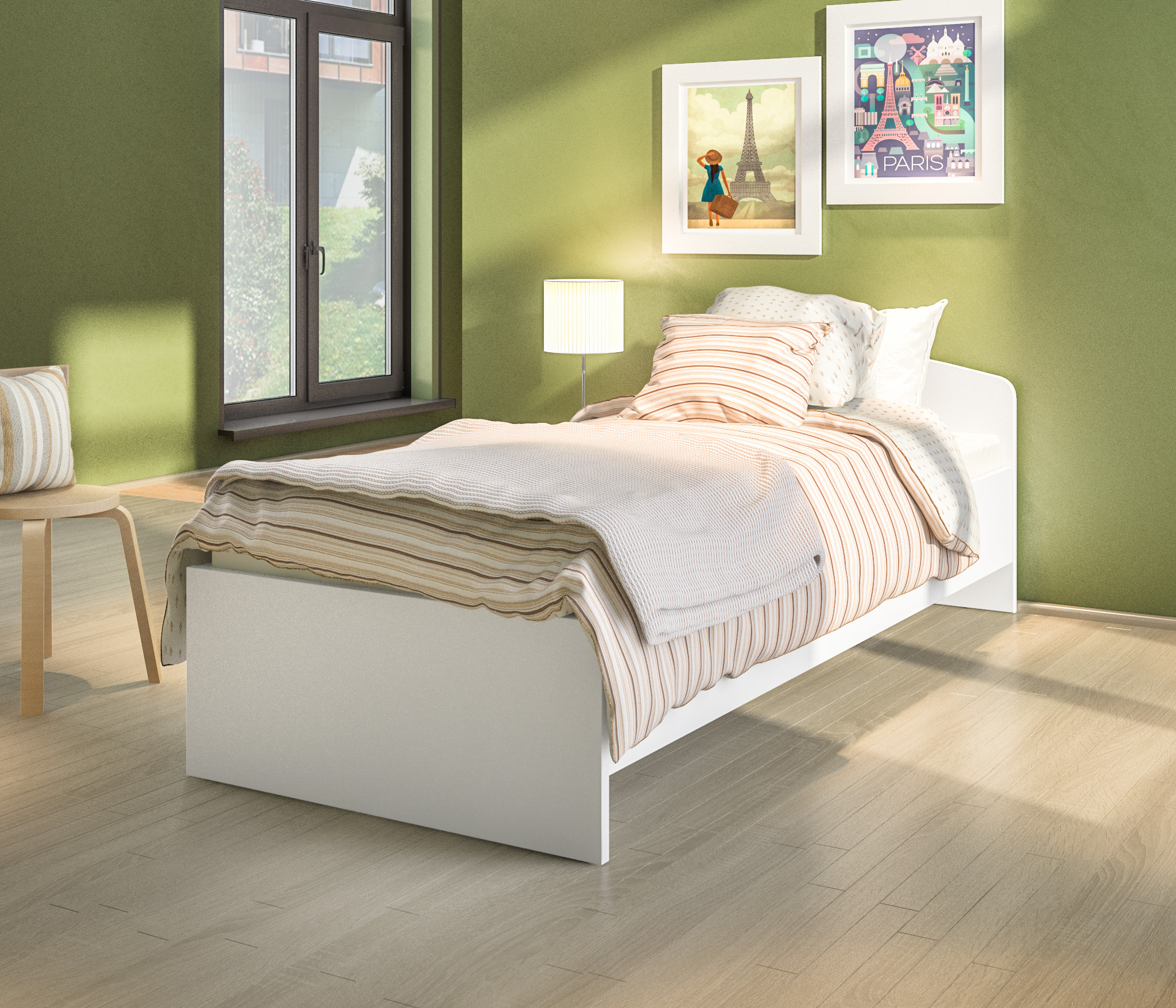 Внешне выглядит мебель довольно мило. Сборщики быстро установили шкаф, кровать, стеллаж и стол.