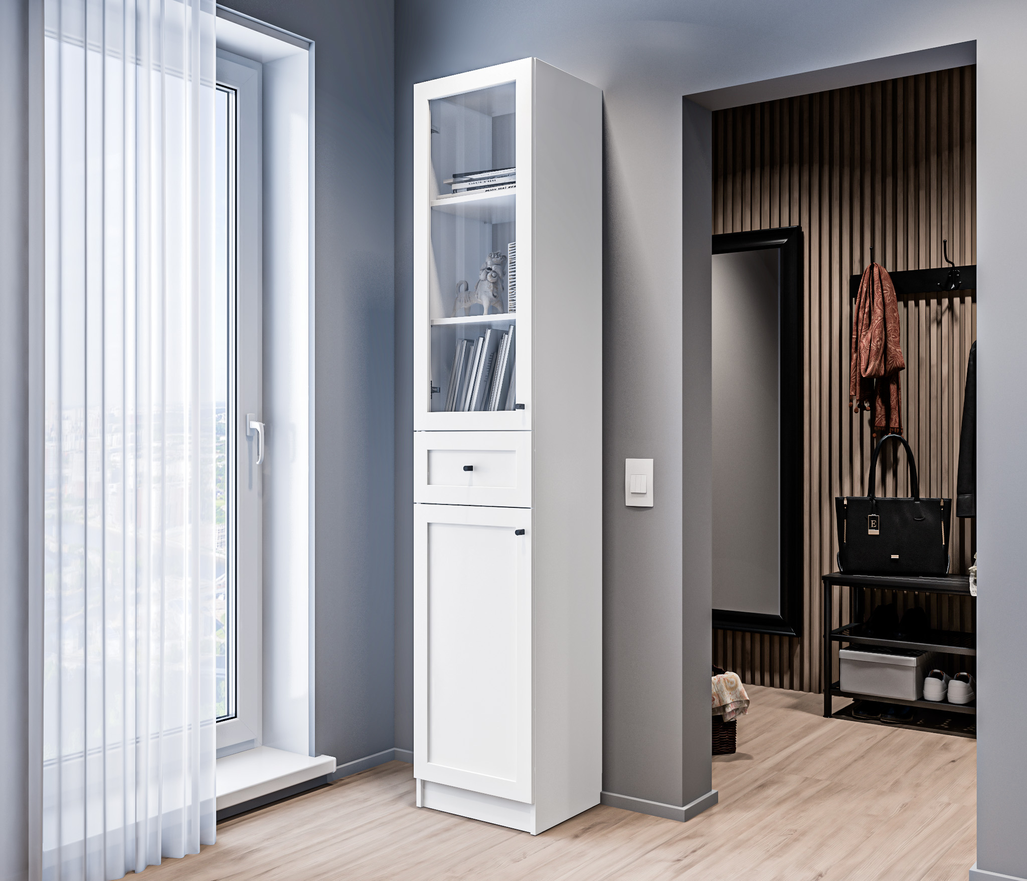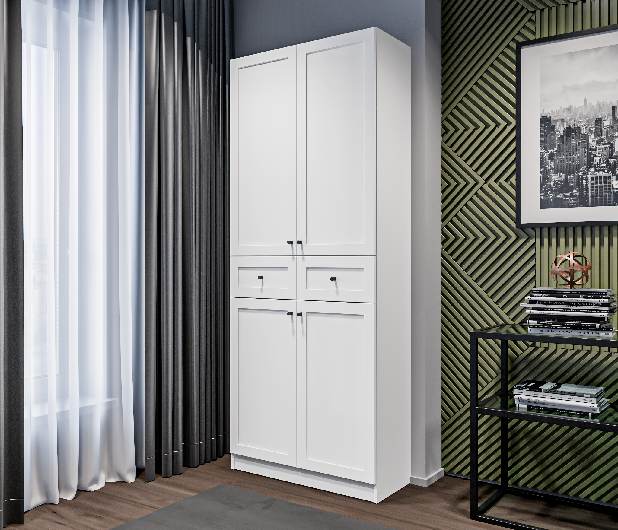 Шкаф просто идеально вписался в спальне, такой приятный цвет, совсем не выглядит габаритным, а поместить можно все вещи(зимние и летние).