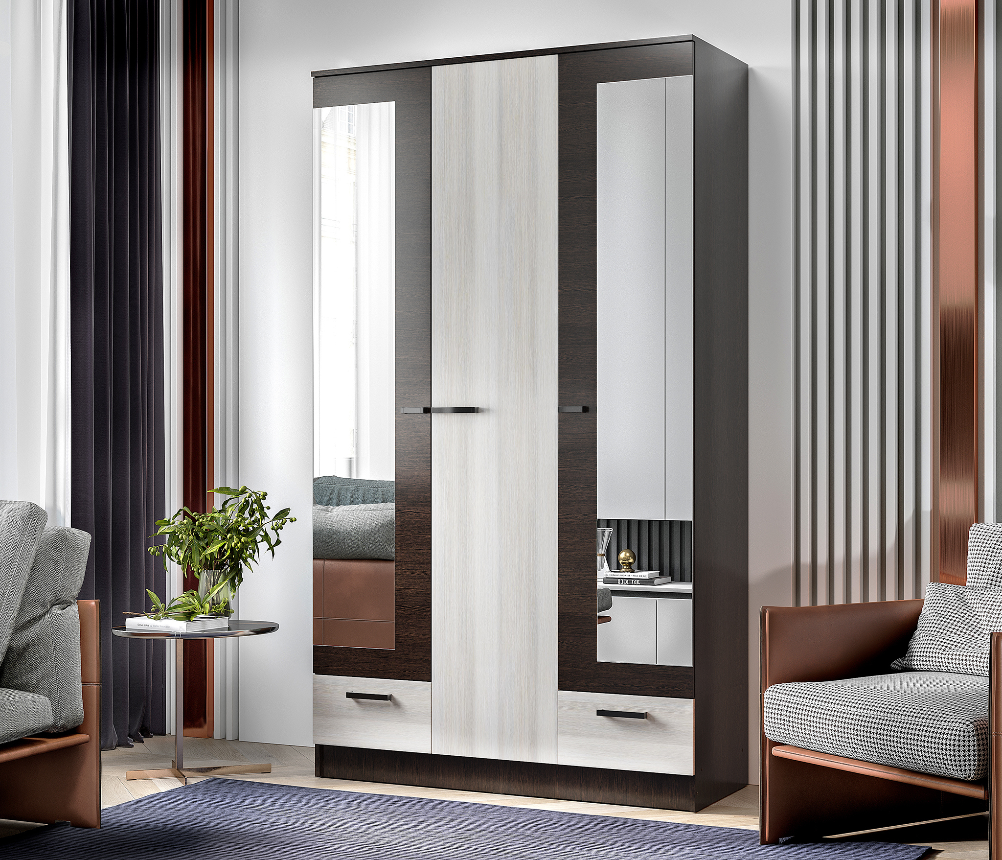Многофункциональная гостиная ПЕКИН для общей комнаты. Благодаря контрастному сочетанию светлых и темных оттенков модель отлично впишется как современный, так и классический дизайн комнаты.