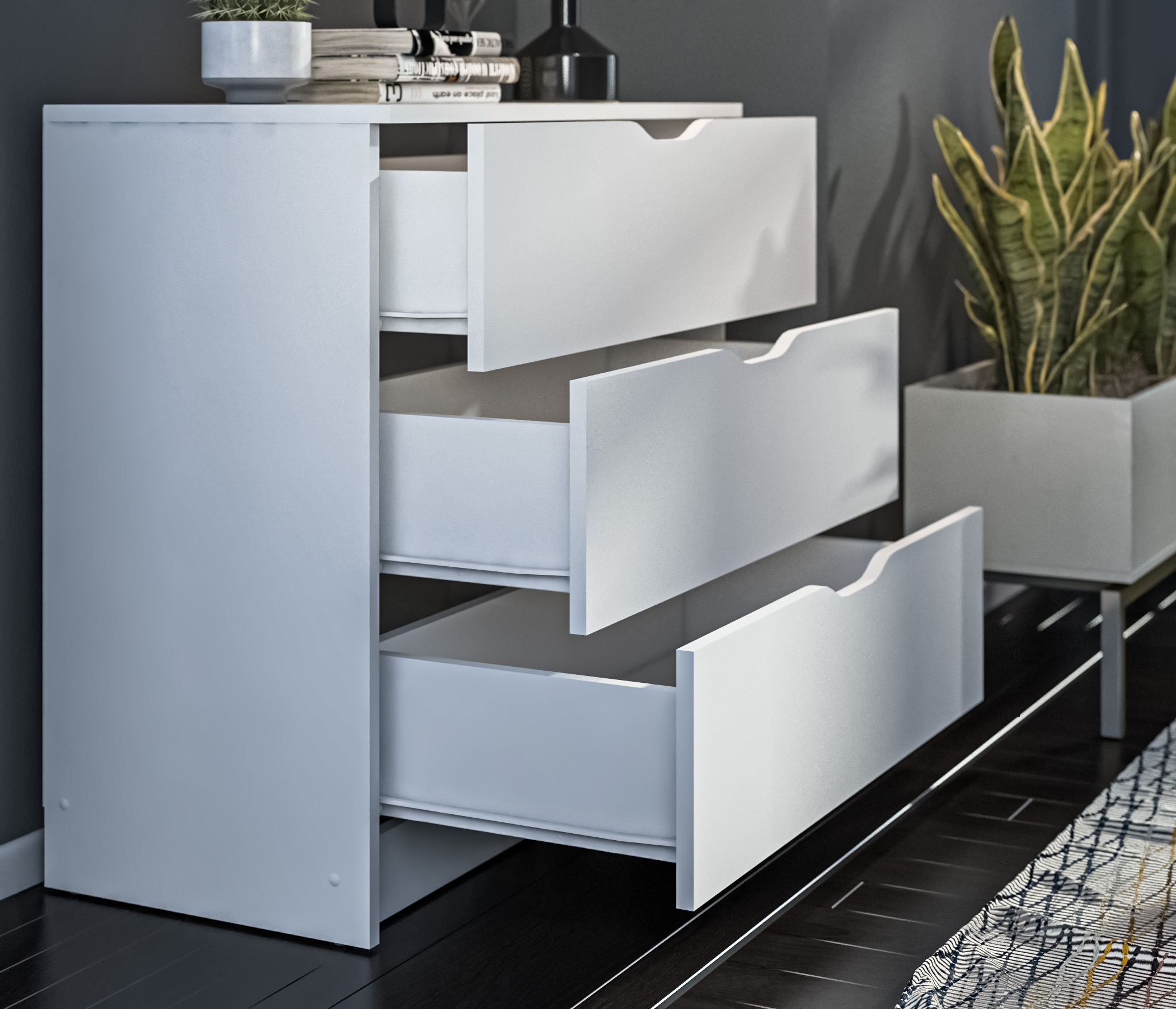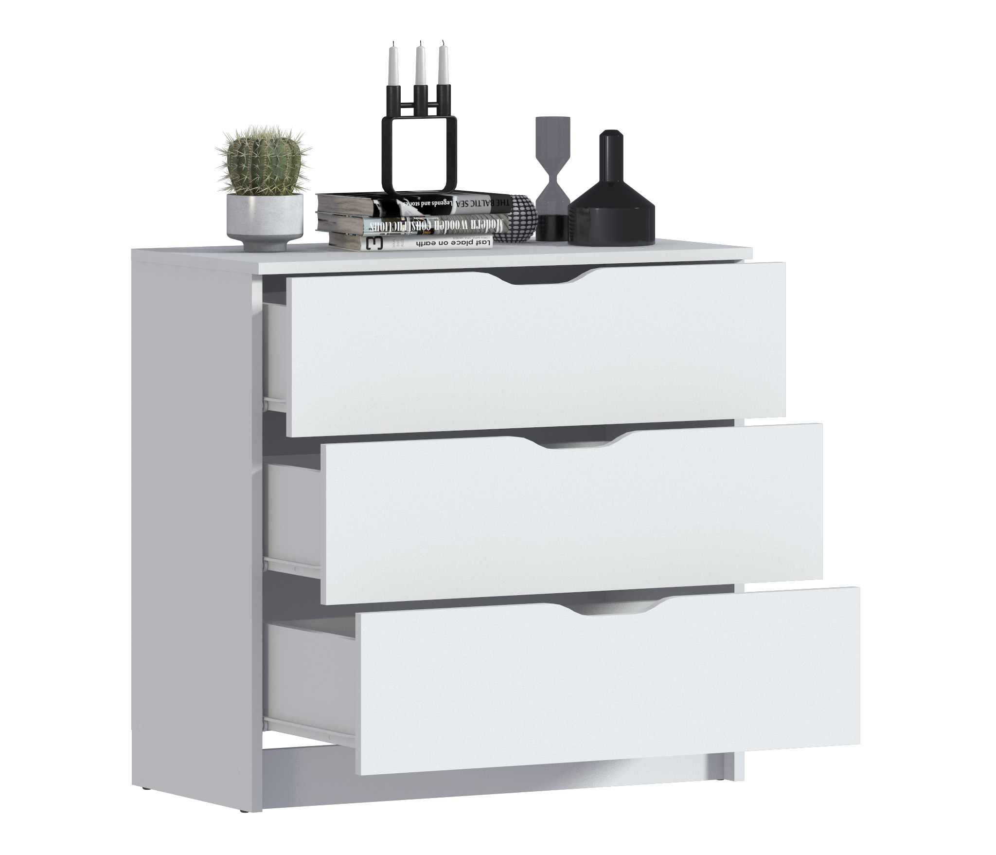 Комод для вещей из коллекции "Бруклин" имеет лаконичный дизайн и компактные размеры, 75х78х39 см. Комод выполнен из практичного материала, ЛДСП, поэтому подойдет даже для ванной комнаты. Белый комод прекрасно впишется в светлое и даже темное помещение, цвет универсален и поддержит любой интерьер. Расположите Бруклин СБ-3249 в гостиную - наполните книгами или важными документами, поставьте в спальню - там он послужит для хранения одежды, передвиньте в детскую - используйте для игрушек. Данный комод с ящиками настолько универсален, что найдет применение в любой квартире или помещении. Мебель укомплектована качественной фурнитурой: ящики легко выдвигаются и задвигаются обратно. Три просторных ящика вместительные и удобные. Отсутствие ручек - дизайнерское решение, пользоваться мебелью удобно, нет выступающих частей, внешний вид лаконичный и стильный.