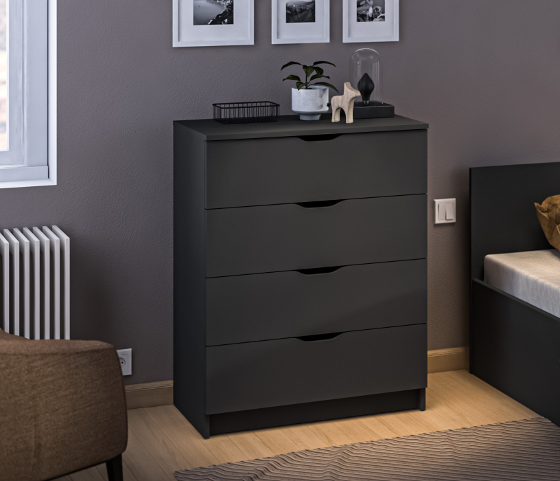 Комод из коллекции Бруклин - успешно впишется в ваш интерьер и будет полезен в любой комнате квартиры. Комод может использоваться для игрушек, если будет установлен в детской комнате, для одежды - если поставить мебель в спальню или в гостиную, а также для косметики и сменных полотенец - если использовать данную модель в качестве шкафа для ванной. Деревянный комод для вещей выполнен из ЛДСП, при попадании на него влаги постарайтесь устранить пятно как можно быстрее, но легкой влажности данный материал не боится. Размеры данной модели весьма компактны, 39х78х97 см, комод занимает не много места, но благодаря вместительным ящикам - позволяет разместить все самое необходимое. Комод с ящиками - необходимый предмет мебели для каждой квартиры.