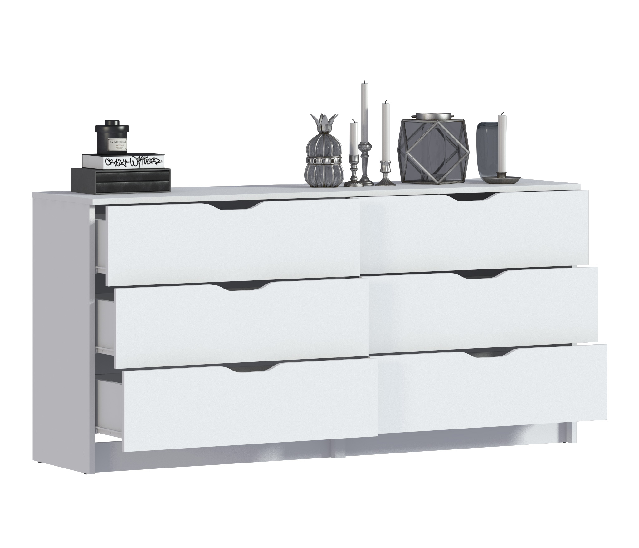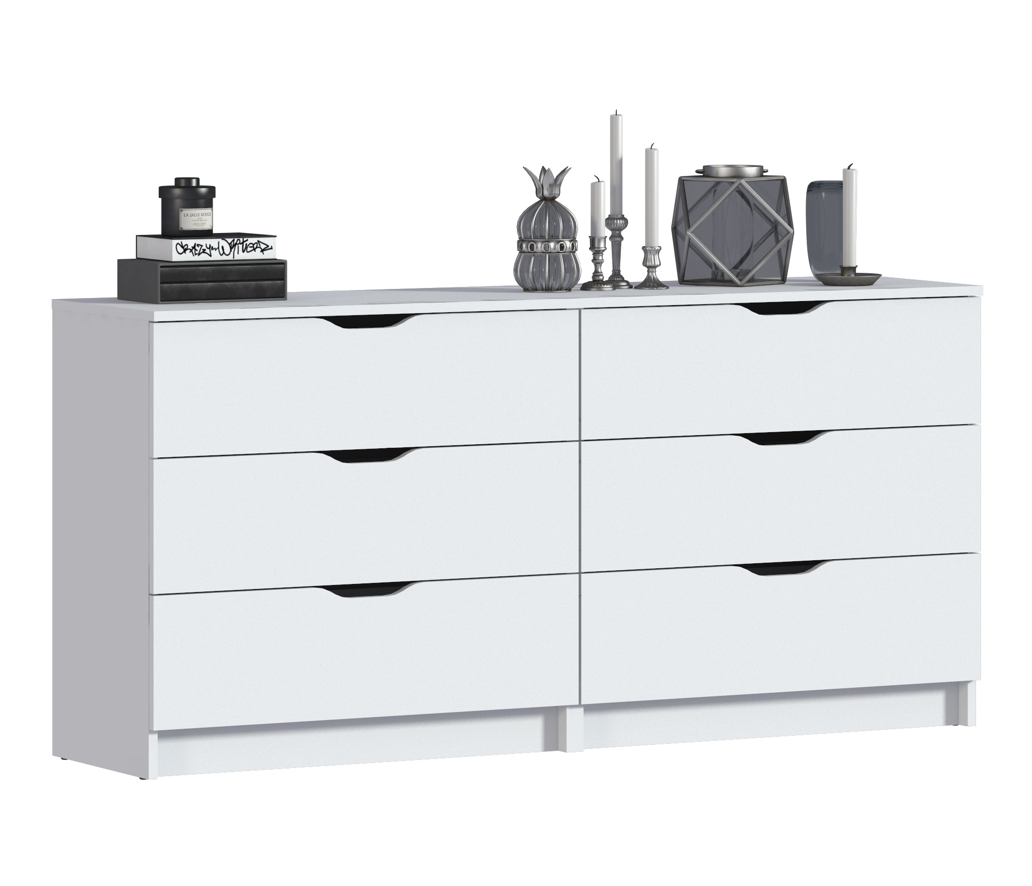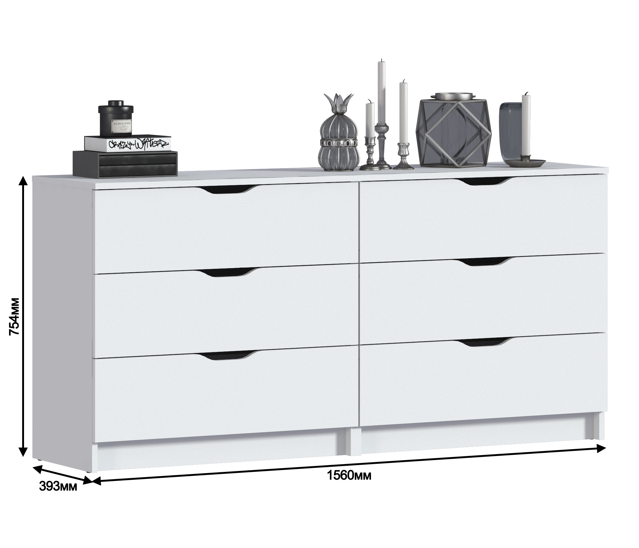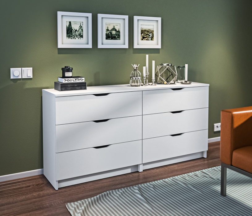 Комод для вещей относится к стильной и элегантной коллекции "Бруклин". Комод выполнен в белом цвете, что делает модель универсальной и актуальной для долгого периода времени. Данный комод с ящиками можно использовать не только для одежды: установите мебель в детскую и используйте комод для игрушек, в гостиной комод может использоваться как дополнительная поверхность для установки телевизора или приятных сердцу вещей интерьера, а вместе с тем - прятать от посторонних глаз личные вещи. Модель Бруклин подойдет даже для ванной, поскольку сделана из ЛДСП и не боится влажности. Разместите в ящиках все многочисленные баночки и тюбики, и избавьтесь от полочек, висящих над ванной, которые регулярно задеваешь рукой. Ну а если разместить комод в спальне, благодаря его вместительным размерам 39х156х75 см, в ящиках получится спрятать не только одежду, но и полотенца и даже постельное белье.