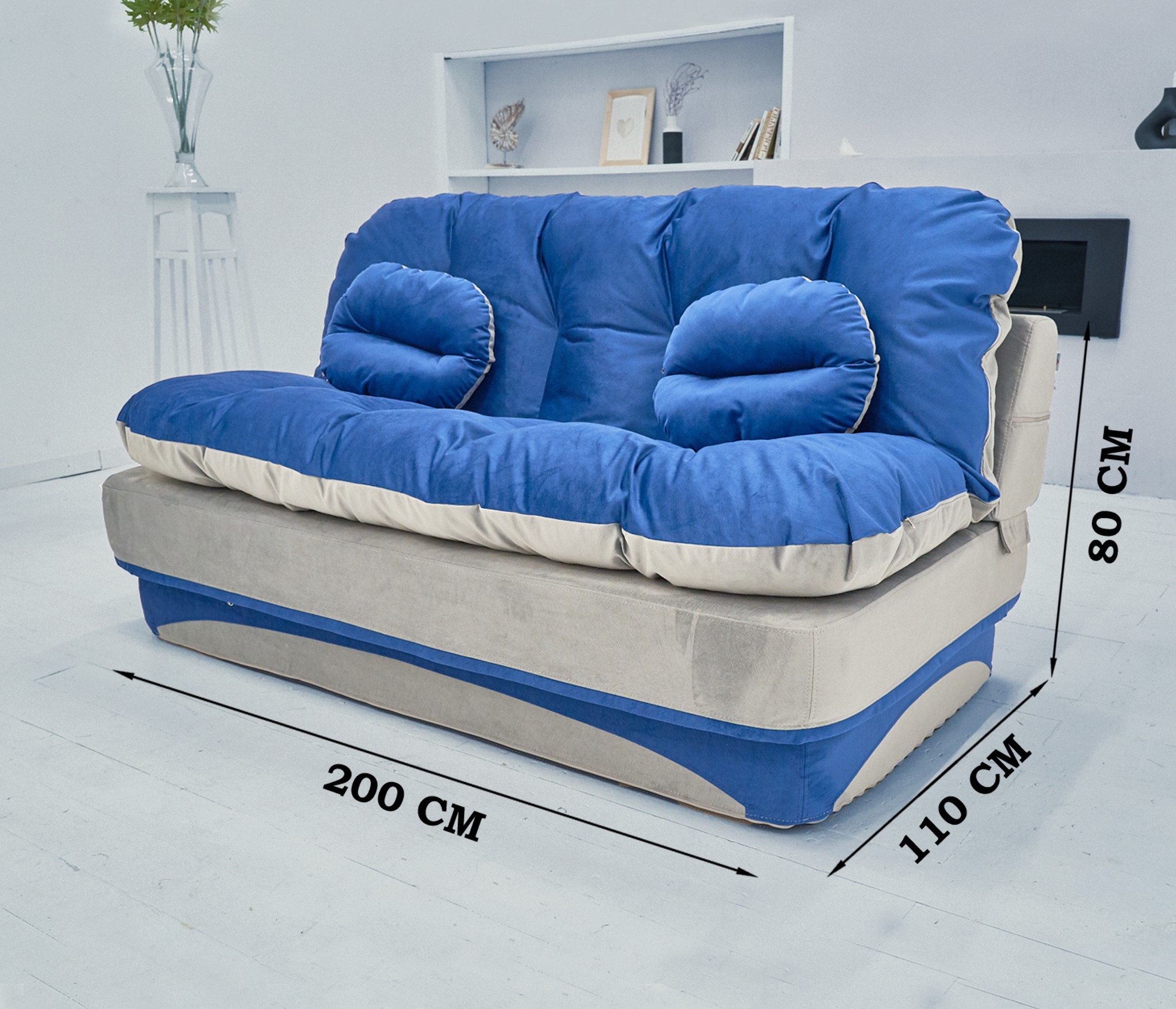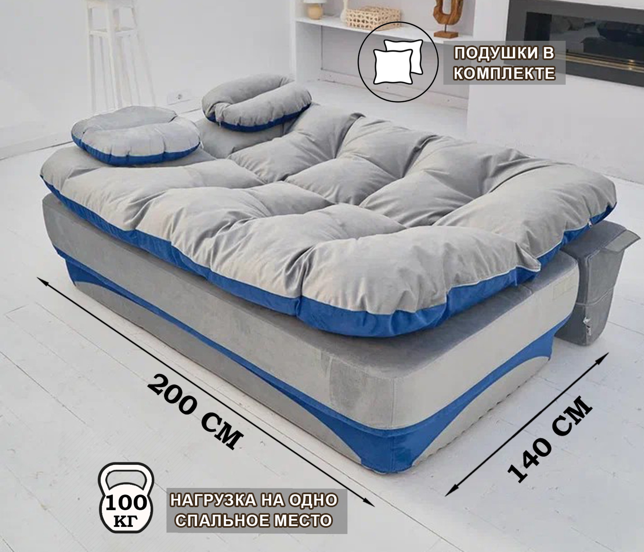Бескаркасный диван-кровать Клиффорд 2000*930 мм велюр (Синий) Код I0000316256