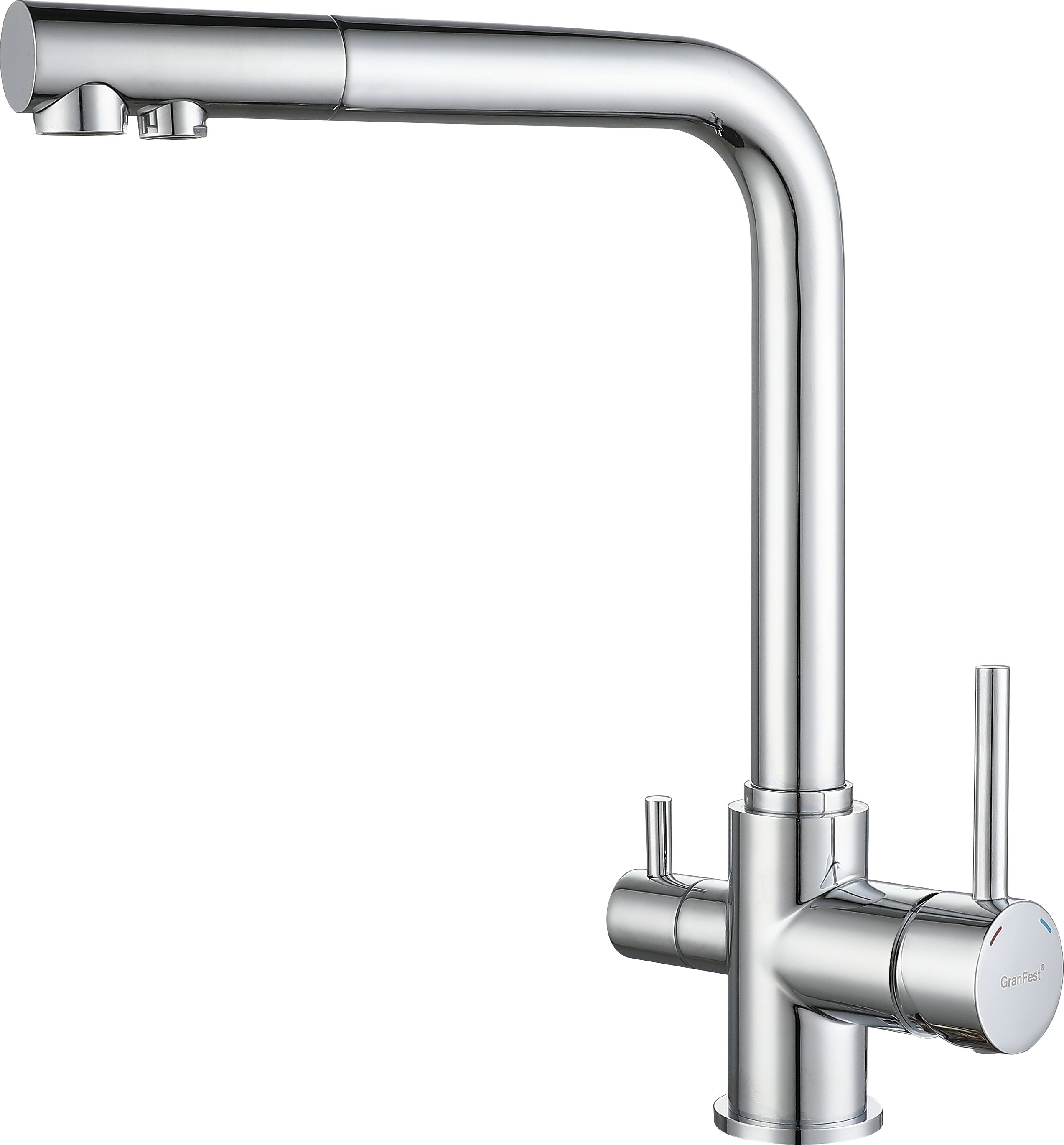 Смеситель GranFest для кухни Г-обр с краном питьевой воды (Хром)