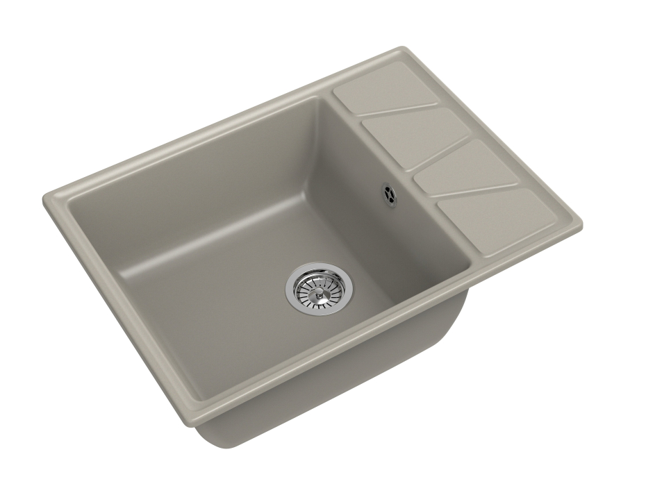 Выраженный рисунок на крыле реалистично повторяет геометрию двускатных крыш домов, говоря об основательности модели GF-V-680L. Большая практичная чаша размером 460*440 мм имеет форму правильной усеченной пирамиды, Ухаживать за такой чашей одно удовольствие. Мойка для кухни устанавливается в шкаф шириной 600 мм, поэтому место для яркой новинки найдется даже в небольшом кухонном гарнитуре. Мойка реверсивная (оборачиваемая). Это значит, что основная чаша может располагаться справа либо слева в зависимости от особенностей планировки Вашей кухни и потребности в рабочей поверхности. Дизайнерская модель GranFest выполнена из композитного материала, в основе которого лежит мраморная крошка и базальтовое волокно, что обуславливает повышенную прочность и долговечность. Благодаря защитному слою гелькоута, мойка не покрывается налетом и не распространяет неприятных запахов.