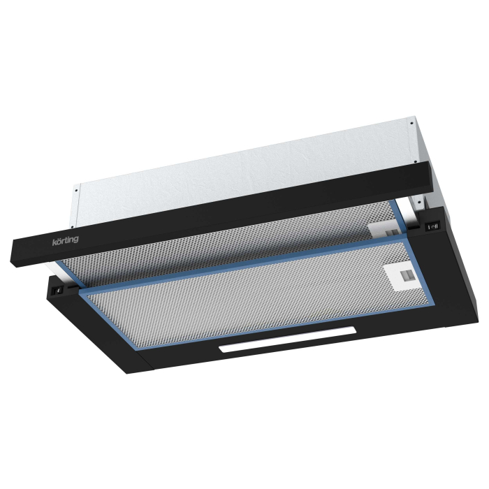 Встраиваемые в шкаф с выдвижным экраном. Встраиваемая с выдвижным экраном, ширина 60 см, мощность 550 м3/ч., 2 режима, механическое (клавишное) управление, алюминиевый жировой фильтр, LED освещениe.
