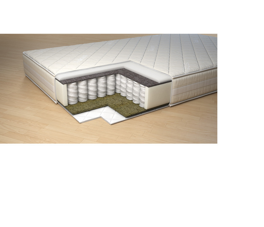 Матрас с ортопедическим эффектом на основе блока независимых пружин. Объемная стежка на ППУ. Матрас имеет среднюю жесткость.