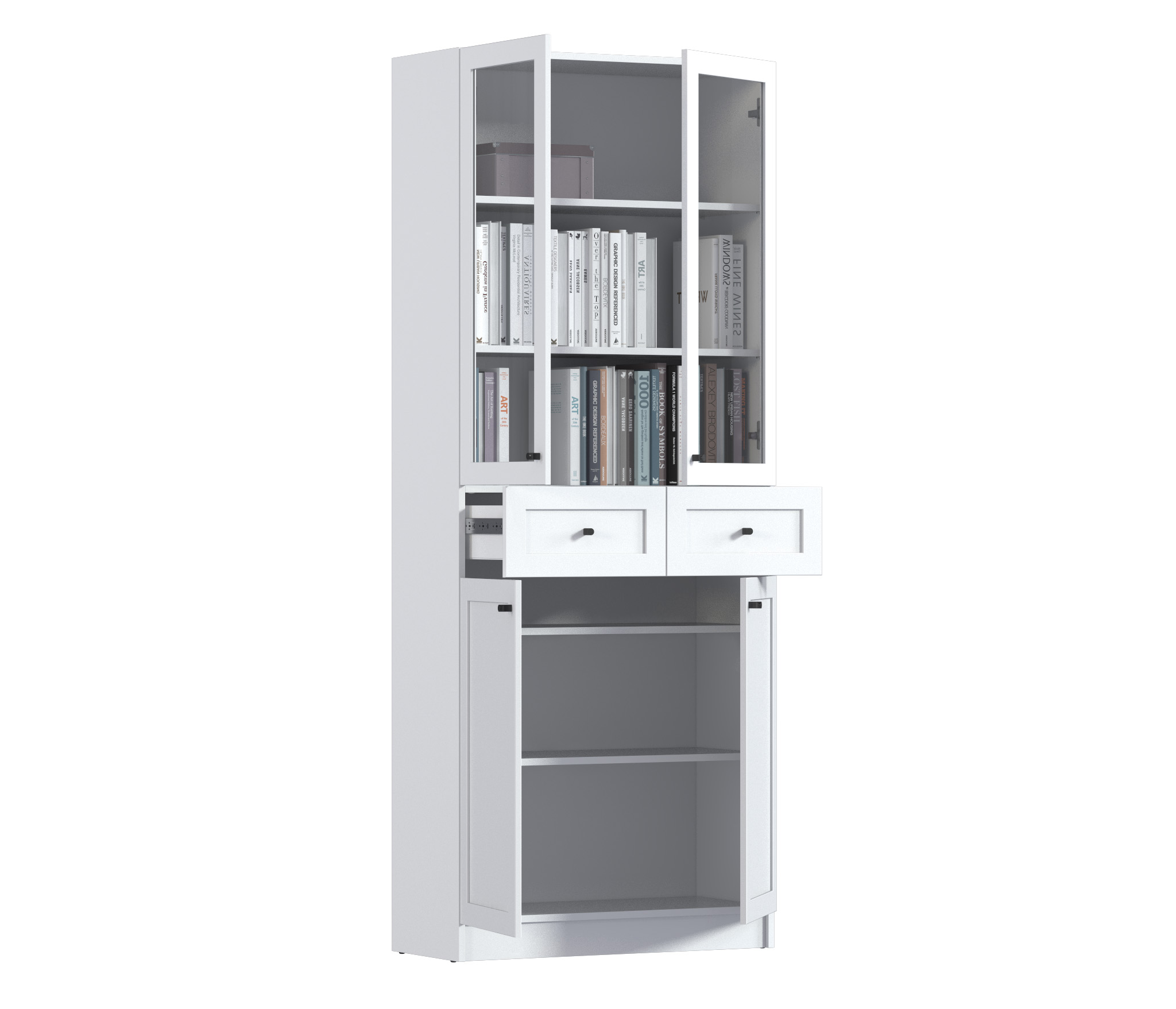 МС Твин предоставляет возможность собрать шкаф или стеллаж по своему вкусу. Вы сами выбираете размеры, цвет ручек: белый или черный, наполнение: ящик или полки. Помимо этого, вы можете решить, оставить фасады глухими или выбрать стеклянные, чтобы добавить прозрачности и легкости в ваш интерьер. Создайте шкаф-стеллаж, который идеально подходит для ваших потребностей и вписывается в ваш стиль.