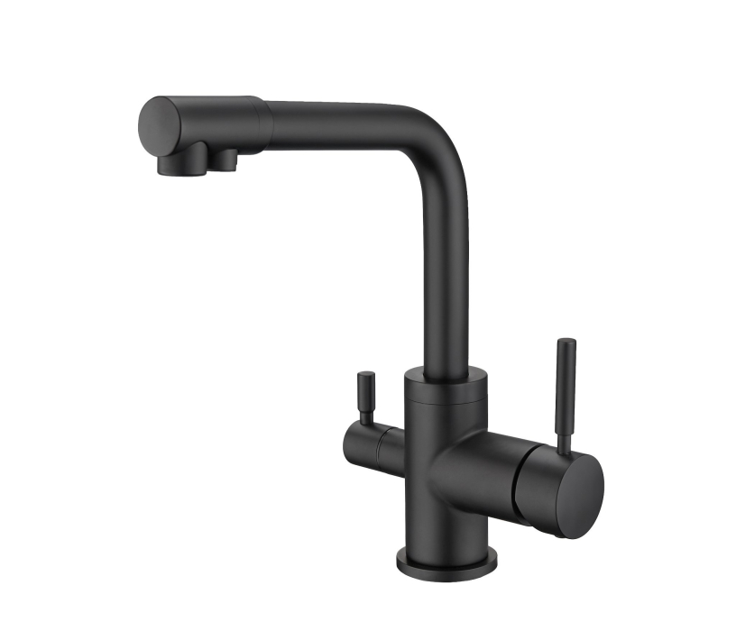 Дизайнерский смеситель для кухни, в черную кухонную мойку. Данный смеситель сделан из латуни с нанесением покраски методом электрофореза.