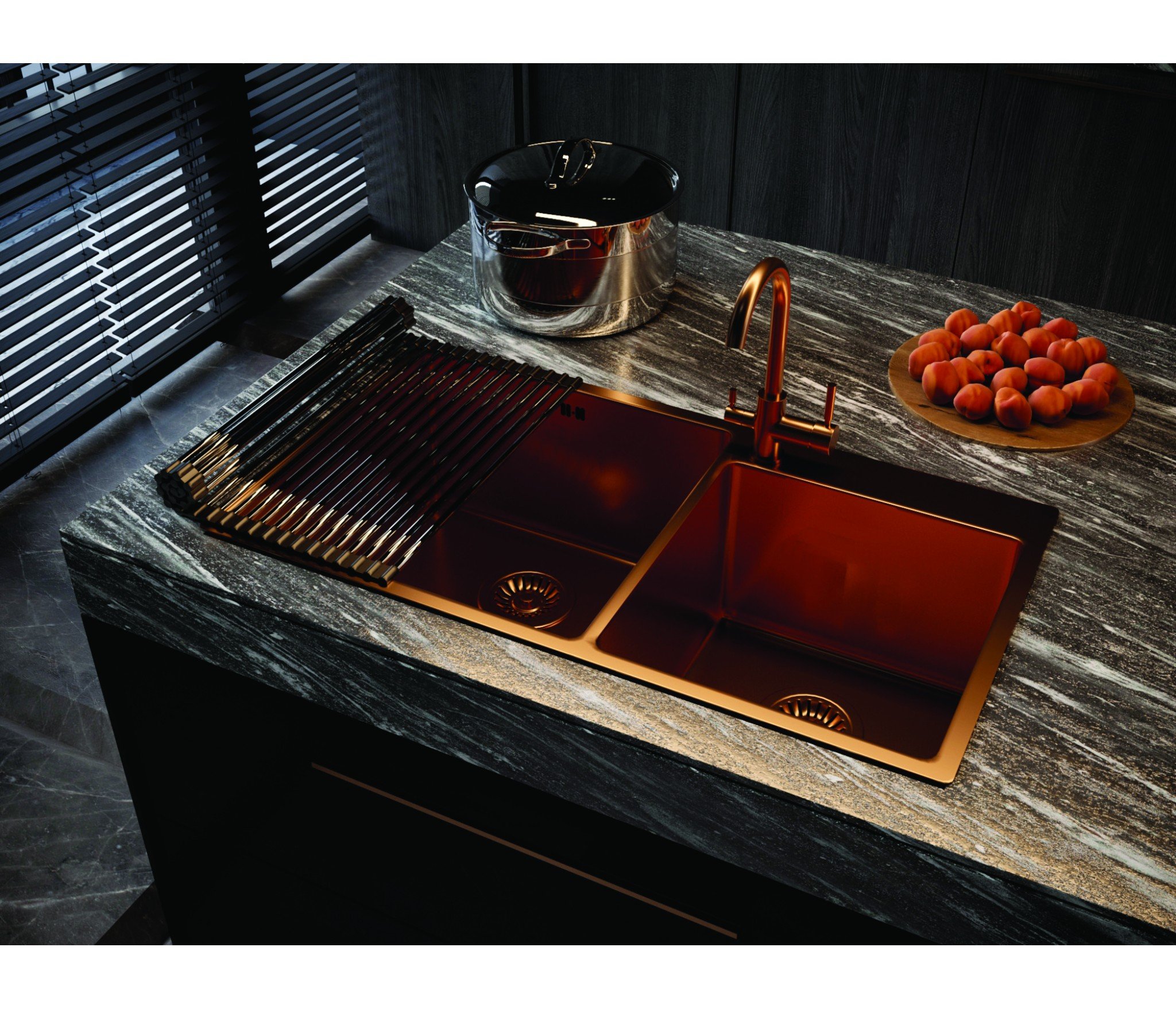 Дизайнерский смеситель различных цветов. Смеситель по цвету сочетается с PVD мойками EMAR.