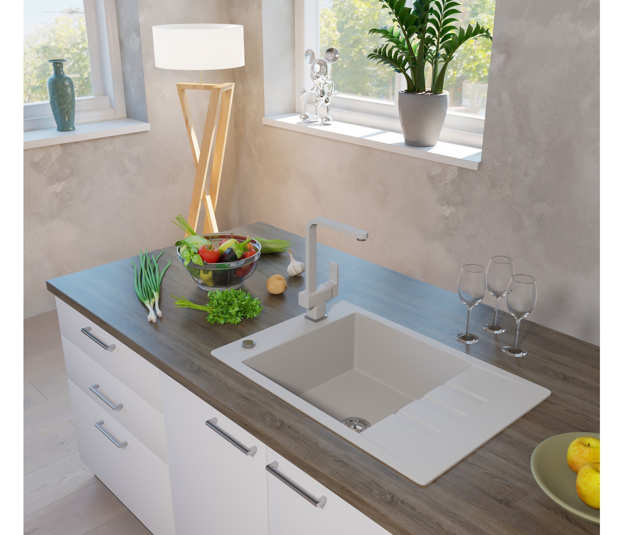 Кухонные мойки EMAR QUARTZ на 78% состоят из измельченного кварца различных фракций и 22% связующих полиэфирных смол. Дополнительные связующие компоненты образуют антибактериальную защиту. Бесшумные, практичны в уходе и удобны в эксплуатации.