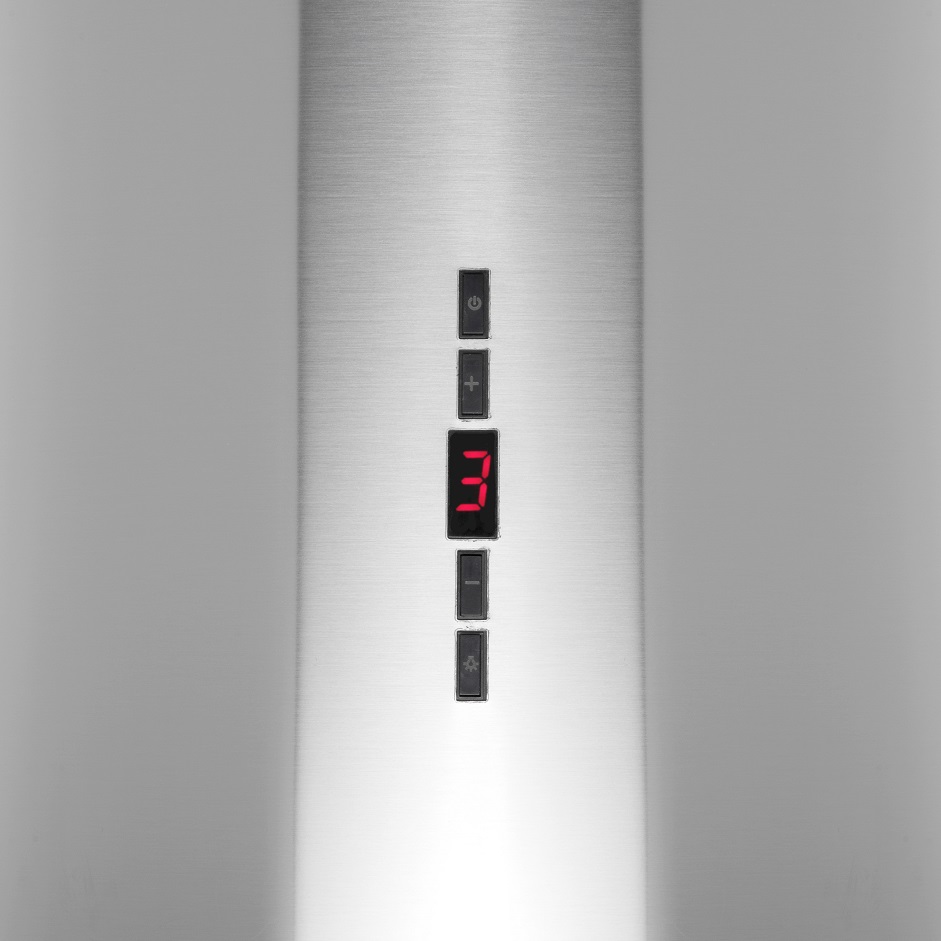 • Вытяжка выполнена в форме цилиндра. Геометрические формы повсеместно используется в современных дизайнерских проектах, они ассоциируются с простотой и лаконичностью, привносят в помещение гармонию и стиль